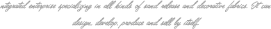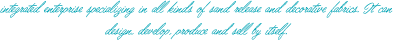 從事各類沙發(fā)布、裝飾布的工貿(mào)一體化企業(yè),可自行設計、開發(fā)、生產(chǎn)、銷售。